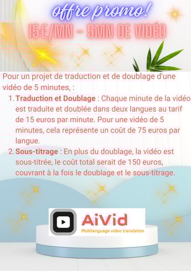 Externaliser vos besoins en traduction vidéo multilingue et création de miniatures avec nous garantit une communication de marque cohérente et professionnelle à l'échelle mondiale, tout en vous permettant de vous concentrer sur votre cœur de métier. Notre expertise assure une augmentation de votre portée internationale et de l'engagement utilisateur, optimisant ainsi votre retour sur investissement dans les marchés cibles. En savoir plus?